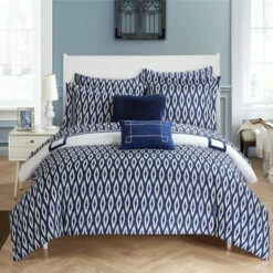 Cheapest ❤️ Carson Carrington Juelsminde 9-piece Reversible Navy/ White Bed In A Bag Comforter Set ✔️