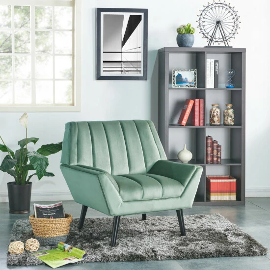 Soft, cozy, and stylish, this chair is a special and sophisticated addition to any space. The turquoise velvet gracefully complements the mid-century modern design for a delightful retro look you are sure to adore.