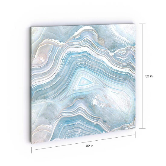 The ‘Agate in Blue I’ canvas art accentuates indoor space. The breathtaking abstract impression comes in soft shades of light blue with dynamic lines and shapes for a subtle, soothing, and timeless look. The gallery wrapping ensures the art continues around the sides of the piece.
