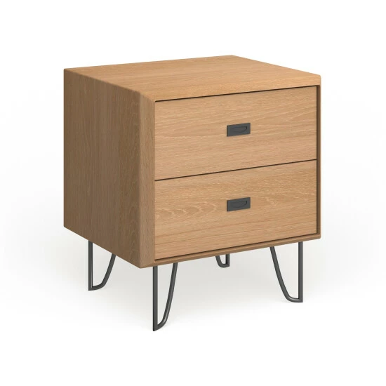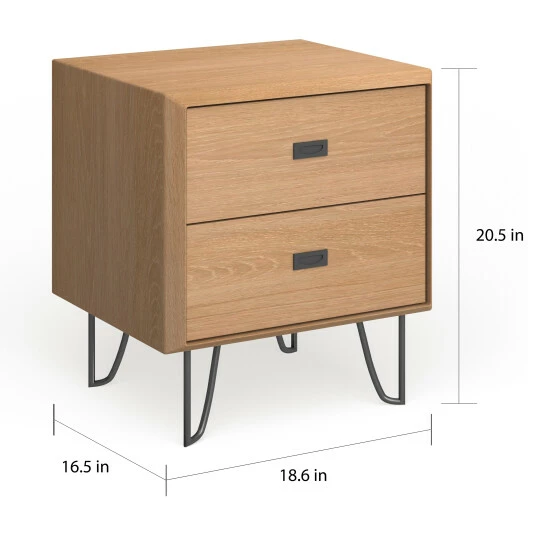 Update your bedroom with this mid-century nightstand from Carson Carrington. With a subtle, effortless style and a durable construction, this quaint little nightstand has a lasting charm. The light oak finish is contrasted with black metal accents for a crisp look.