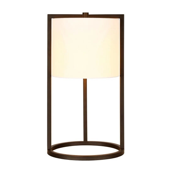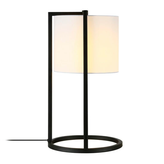 This industrial inspired table lamp is the perfect companion to your living room or bedroom ensemble. Featuring an asymmetrical steel base, it’s drum shade is tucked inside the frame for a structured modern look. The warm metallic finish pairs easily with your existing color scheme.