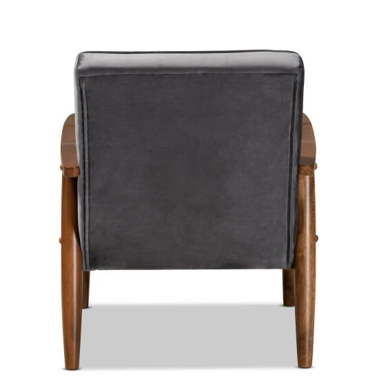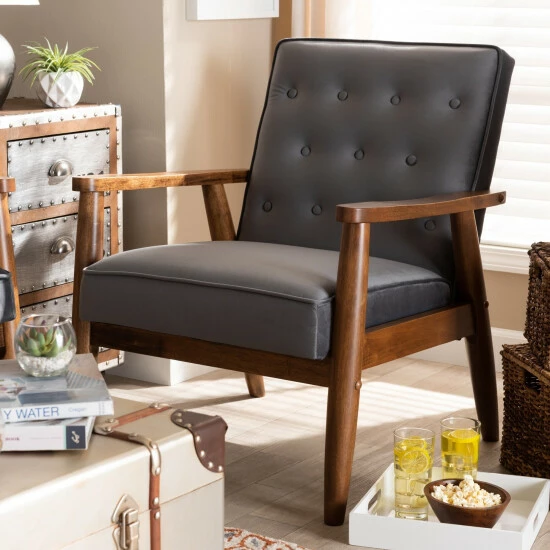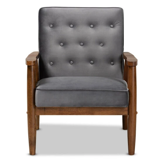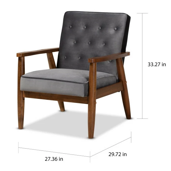 Capture the elegance of a classic, mid-century modern design by pairing your den with this Sorrento chair. This armchair channels a retro vibe with its button-tufted back and splayed legs, while the dark walnut finish lends an appealing quality to its solid MDF and rubberwood construction. The foam padding and polyester fabric ensure a cozy seating experience.