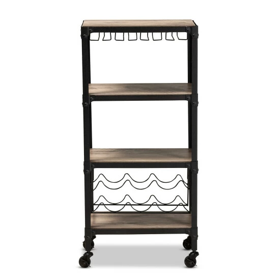 Pour a drink wherever you want in your home with this movable bar wine cart. Smooth-rolling casters ensure easy mobility, while the three roomy shelves hold your bar essentials and accessories. This charming rustic cart has a built-in stemware rack and a wine rack to support your glasses and bottles.