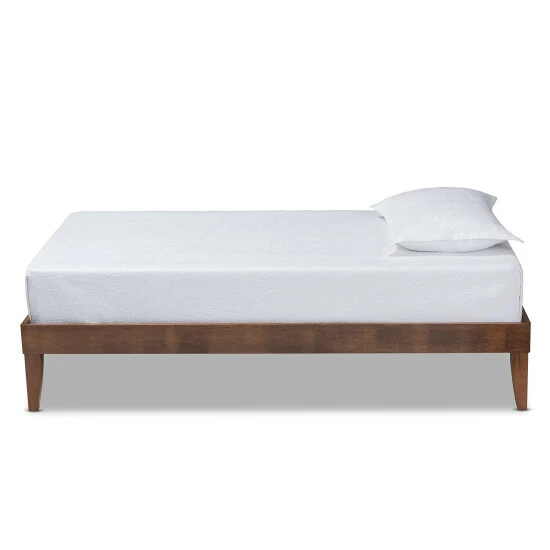Create a fresh, clean look in your bedroom with this Lucina platform bed frame. The mid-century styling of tapered legs and simple wooden frame provides a neat, uncluttered profile that looks great in a contemporary home. The wooden slates provide good support for the mattress of your choice and eliminate the need for a box spring.