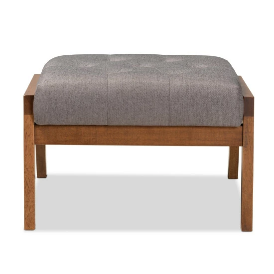 Enrich your mid-century modern living room with the Naeva footstool. Featuring button tufting in a classic diamond pattern and a warm walnut-finished wood frame, this ottoman lends a homey, heritage feel to your seating group. This furniture piece’s wide surface offers versatile use as a seat or an impromptu table for your books or snack tray.