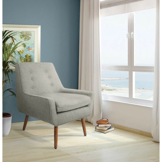 Let your mid-century design spring to life with this tufted ar chair. Chic polyester/cotton blend fabric provides a texture of sophistication to any room in your home. Enjoy style and comfort as you lean into our trending, modern design. Attractive button tufted back, elegant tapered legs and thick cushion seating offers both comfort and quality.