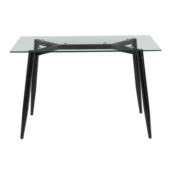 Simplistic and sleek, the Barton Table features geometric metal legs under a clear tempered glass top. Available in two frame finishes, choose the one that suits your space best!