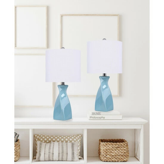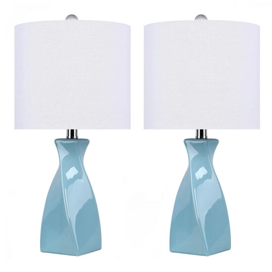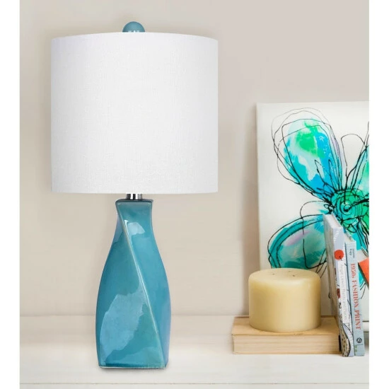 Add a fun and chic style to your home with this incredibly appealing accent lamp. This lamp is made with a ceramic material and features a lovely turquoise color that will bring instant color and charm. Topped by a crisp white linen drum shade and a genuine crystal finial, this table lamp is sure to be a popular conversation piece..