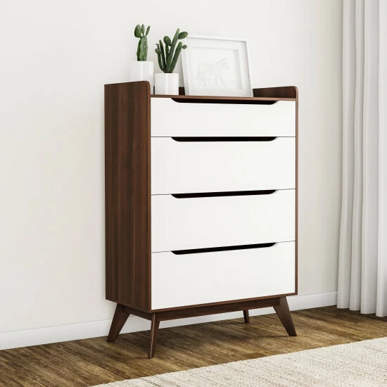 Organize your wardrobe, bedding, and more with this Carson Carrington Borlange mid-century white and walnut four-drawer chest. Four large spacious drawers with easy-to-grip cut-out handles make storing away even the fluffiest of blankets or coats no problem. MDF and wood construction makes this Borlange chest sturdy and durable enough to withstand the wear of daily use.