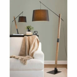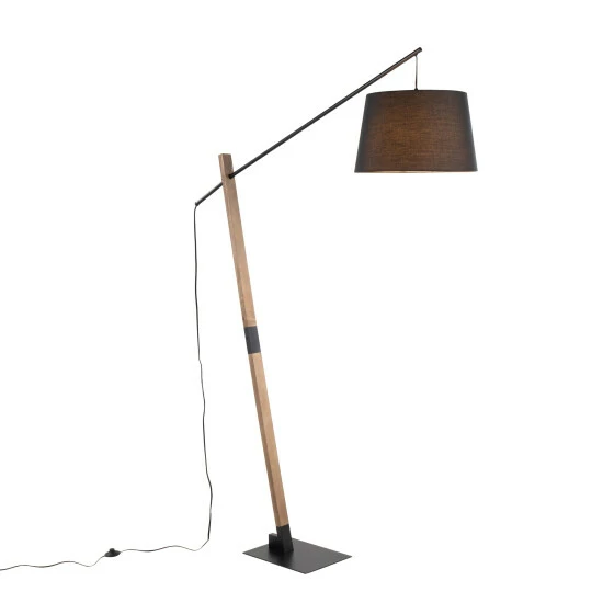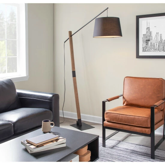 Illuminate your living space with this floor lamp. This contemporary floor lamp features a black metal base, a walnut wood neck, and a black fabric shade. You can adjust the light to precisely the right spot to shine wherever you most need it.