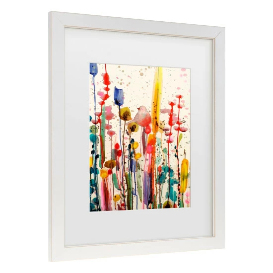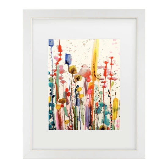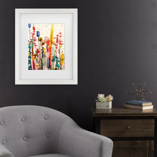 Add classy, contemporary artistry to your home with this lovely framed artwork. This eye-catching art features a slightly abstracted floral scene with spatters of a variety of vibrant colors. This artwork comes in a distressed white frame with antique-white matting.
