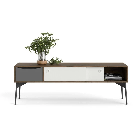 A small Danish island is known for its distinctive scenery with stripes of volcanic ash mixed in the clay of the northern slopes. Inspired by this mysterious majestic landscape phenomenon, Carson Carrington Finley 1-drawer TV Stand with 2-sliding doors by Tvilum was designed with our version of black volcanic stripes, the grey clay, the northern bright light and the natural brown of the forest. The black thin high legs gives the collection a distinct style for your living room. This Carson Carrington Finley TV Stand also features one drawer with a cut-out for handles and two sliding doors for easy access to store home necessities such as books and remotes. The Carson Carrington Finley collection is Danish designed with easy-to-clean foil surface. Complete your living space with other items from the Carson Carrington Finley collection.
