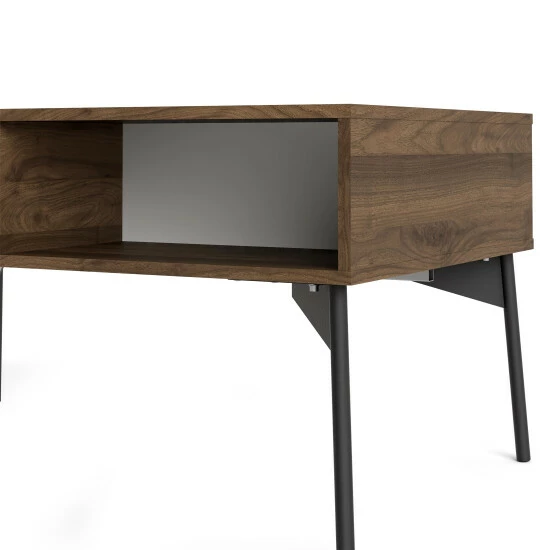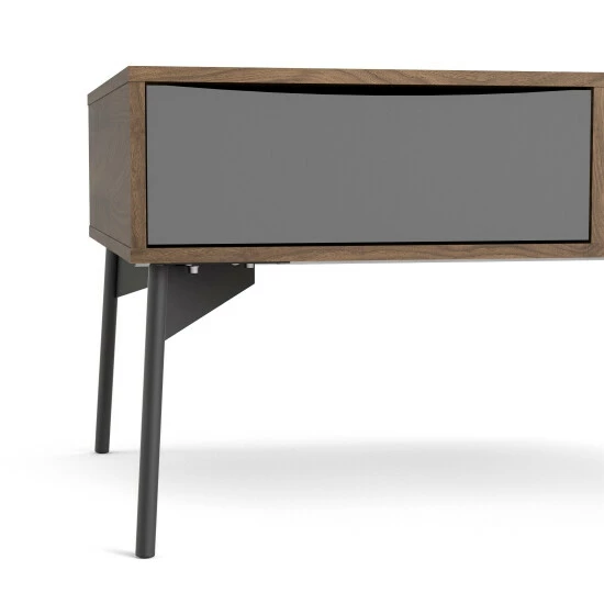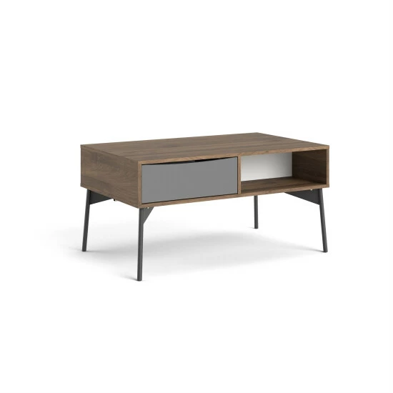 A small Danish island is known for its distinctive scenery with stripes of volcanic ash mixed in the clay of the northern slopes. Inspired by this mysterious majestic landscape phenomenon, Carson Carrington Finley by Tvilum was designed with our version of black volcanic stripes, the grey clay, the northern bright light and the natural brown of the forest. The black thin high legs gives the collection a distinct style for your living room. This Carson Carrington Finley Coffee Table in Walnut/White Matte/Grey also features one drawer with a cut-out for handles and one fixed shelf to store home necessities such as books, remotes, and decorative items. The Carson Carrington Finley collection is Danish designed with easy-to-clean foil surface. Complete your living space with other items from the Carson Carrington Finley collection.