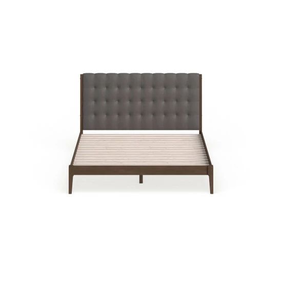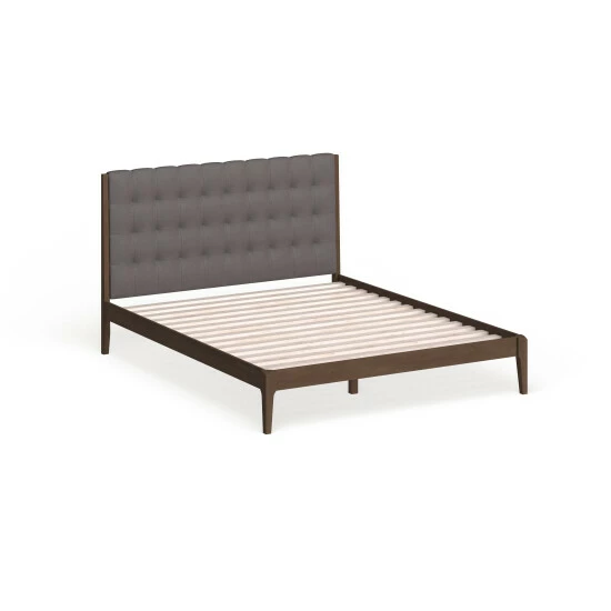 Add mid-century modern style to your bedroom with this lovely Forshaga bed from Carson Carrington. Made from rubberwood, hardwood, and LVL, and upholstered in polyester, available in grey or charcoal color, the charming bed is designed to be used without the need for a box spring. The rectangular headboard features a cushioned panel and grid-tufting for a look that complements the wood base, and completes the attractive feel of this trendy bed.