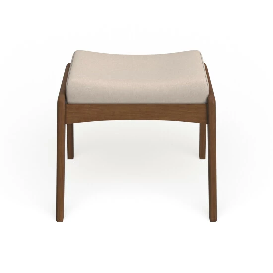 Update your favorite seating space with this chic upholstered ottoman. The walnut-finished frame features splayed legs that are contrasted with beige or grey polyester upholstery. Plush foam fills the cushion for lasting support.
