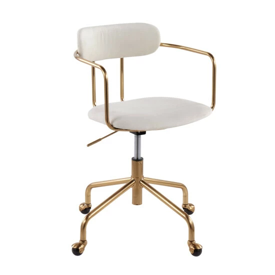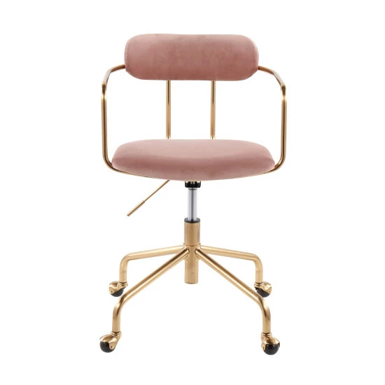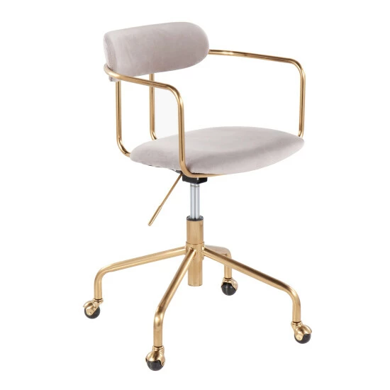 Take your office efficacy and style to new and eye-catching heights, with this velvet task chair. Arriving in your choice of a goldtone frame with a light blue velvet upholstery or a black frame with a black velvet upholstery, this dazzling, multi-functional, versatile, and crisply modern piece is simply begging to adorn your office space and to improve your workflow.