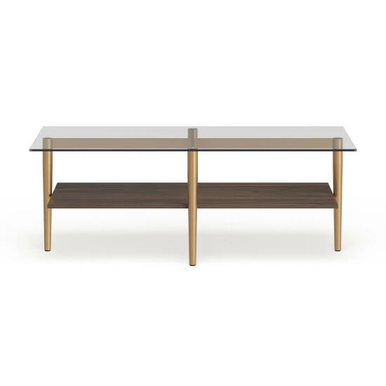 This mid-century inspired coffee table is the perfect pick for your living room or den ensemble. The top is a transparent tempered glass which shows off the architectural connection and carries the rectangular design through the frame. The lower shelf is made with a walnut finish, playing off the tempered glass in size and shape. It’s finished in walnut making it classic and neutral enough to work in any space.