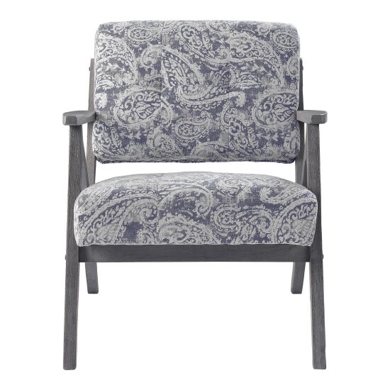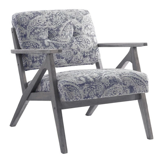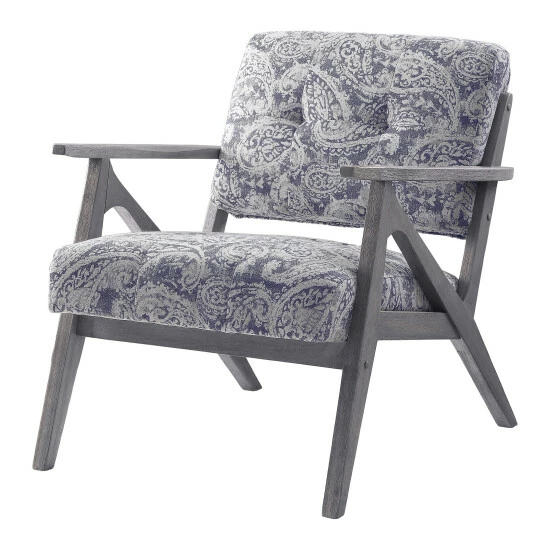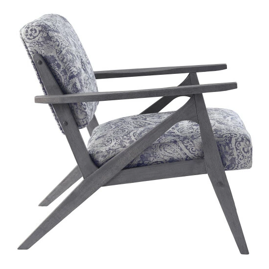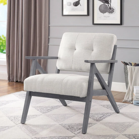 Give your guests some comfortable seating with this grey arm chair. This chair boasts a mid-century design with a rustic finish and wooden frame. The polyester fabric give plenty of cushion and comfort. This unique arm chair combines instant comfort and style.