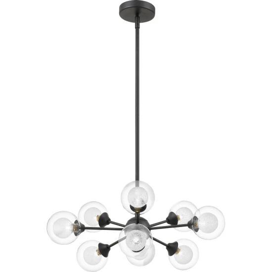 Illuminate your home with this 9-light pendant. This pendant is crafted from steel and finished in a modern earth black. The lighting fixture includes a multi-dimensional shade that intensifies the ambient light. This pendant’s retro style gets an upgrade with shimmering inner glass shades.