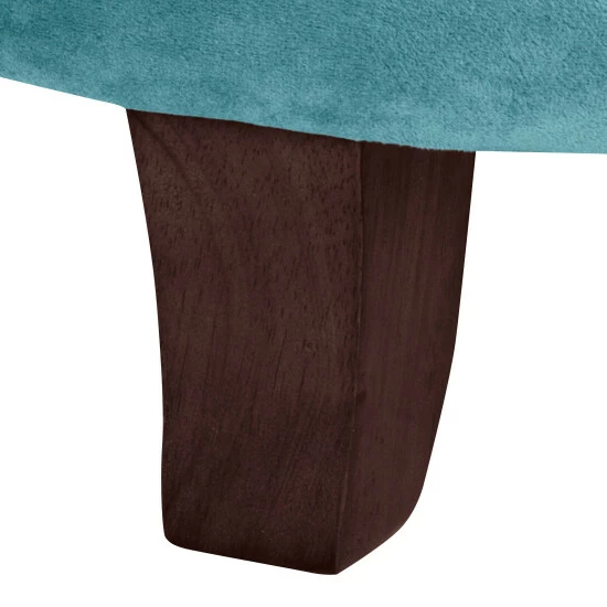This Velvet Tufted Round Ottoman features a lift-off lid with all over button tufting for classic style. Upholstered in soft and durable velvet in a striking teal, this elegant round ottoman has wood legs in a rustic brown finish. Use as a storage ottoman to hide accessories in a bedroom, to store books or magazines in a living room, or to keep controllers or remotes nearby but out of sight. Pair two together for added impact. This tufted ottoman is available in a range of rich velvet colors with coordinating accent items in the same hue. Easy to assemble and maintain.
