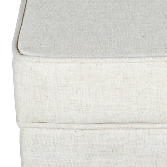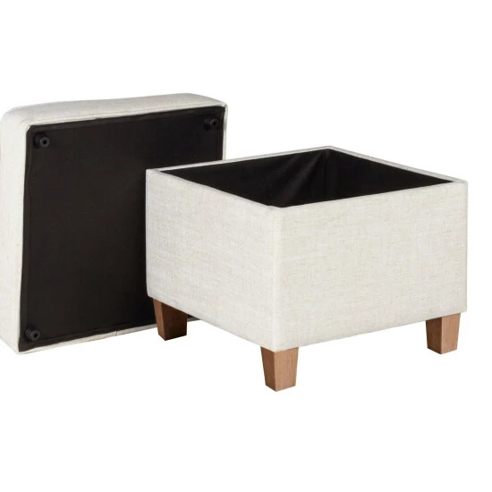 The classic cream square ottoman is complemented by wood legs in a white washed finish. The square storage ottoman adds functional style to any space. Use it to store pillows or throws in a bedroom, hide toys or controllers in the family room, or conceal accessories in an entryway. Pair two ottomans together for added impact. The lift-off lid enables easy access to storage within. No assembly required; spot clean as needed.