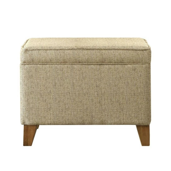 A touch of Scandinavian style gets a breezy showcase in the crisp and subtle design of this ottoman. Textured, tan fabric complements any decor, while the hinged lid provides convenient access to storage. Enjoy extra seating, storage, and a comfortable footrest with this storage ottoman.