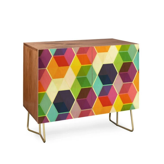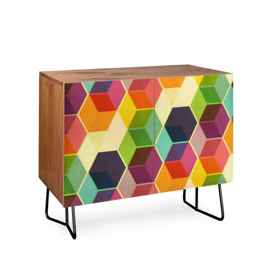 Make a bold statement with this lovely credenza. This credenza is available in different finishes and includes an adjustable interior shelf. The piece features a hexagonal pattern and can be used as a tv stand, armoire, bar cart, and office cabinet.
