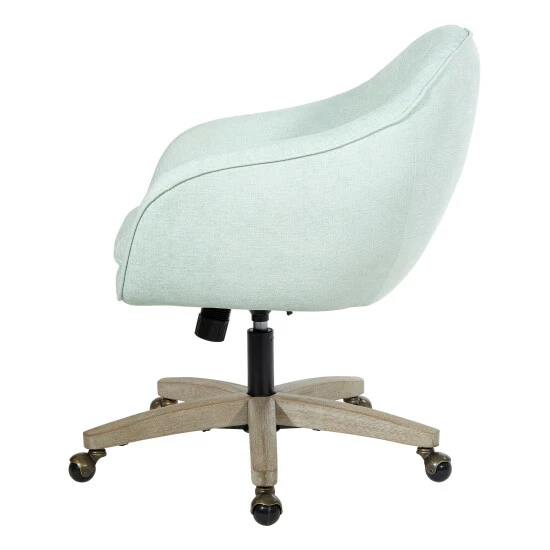 Bring a dash of traditional character to your study with this executive chair from OSP Home Furnishings. A swivel feature and adjustable seat height offer comfort in your workspace. The caster wheels provide convenient mobility, while the winged sides and solid color fabric upholstery round out the design.