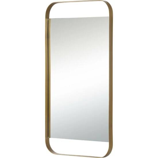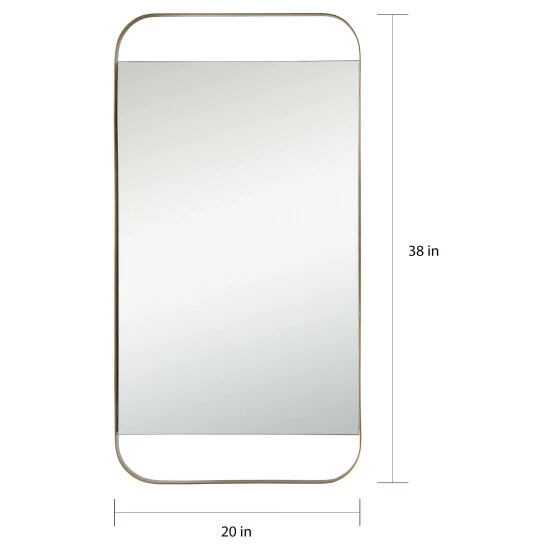 Modern minimalism fills the entryway with this wall mirror. The contemporary appeal of the painted antique brass finished iron frame is beautifully balanced by the streamlined structure. Pair with ornate accessories to complement the design’s palette.