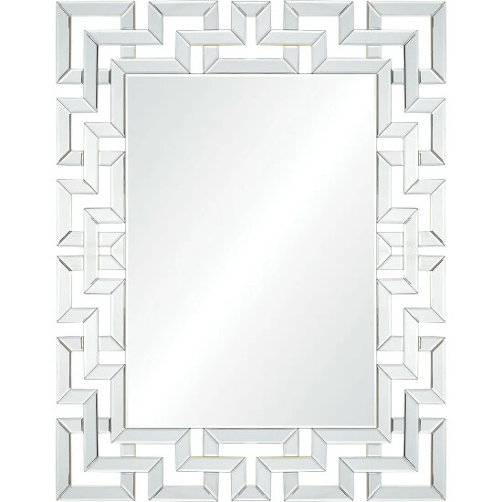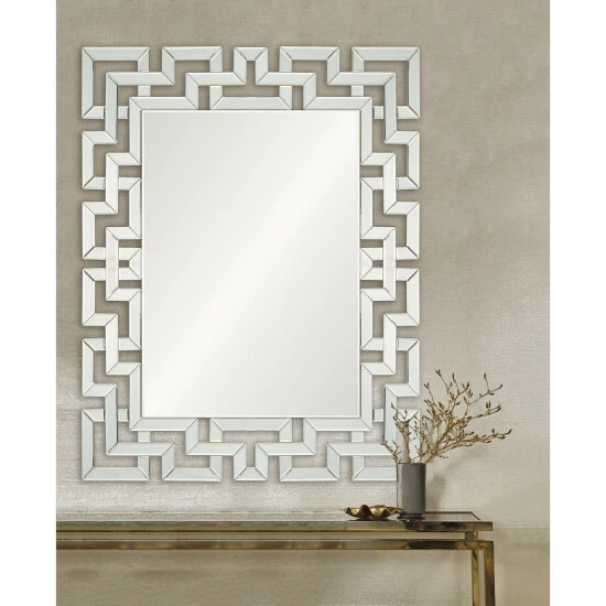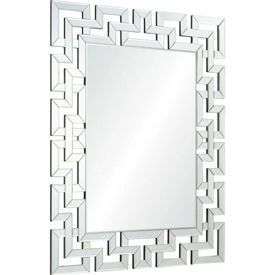 The modern living room takes on a designer quality with this wall mirror. Featuring an intricate pattern around its all-glass structure, it strikes the perfect balance of trendy and timeless. Set against a vibrant background, this piece will truly pop.