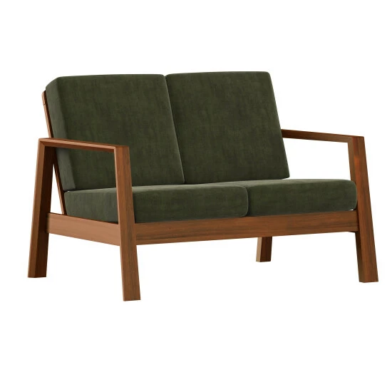 Bring a mid-century modern feel to your space with this Horuphav loveseat from Carson Carrington. Crafted with an exposed solid wood frame in a cherry finish, the loveseat has a unique look and feel. The plush cushions come in your choice of color and linen or velvet fabric texture.