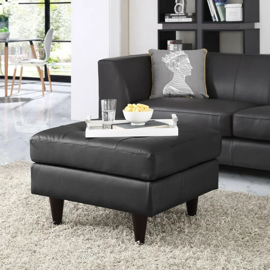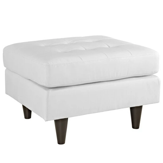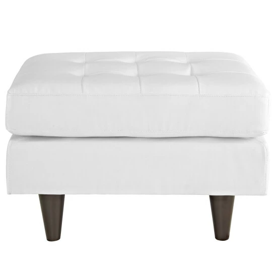 Kick up your feet and relax with this comfortable, elegant ottoman. Plush foam padding makes the ottoman a comfortable footrest or extra seat, while the simple style and black or white upholstery complement any space with elegance. Button tufting and tapered legs offer a touch of mid-century charm.