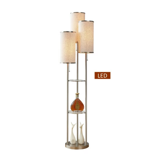 Light up your living room, bedroom or office with this sleek and modern Tri-Light LED Shelf floor lamp. A perfect addition to any rooms with modern or contemporary decors. The Tri-Light Premium Tan shade adds a soft note to your decor. Standing over 5. 5 feet(66’/60’/55’H), the fixture has small floor print and draws attention. This Shelf lamp provides ample lighting suitable for reading, writing or creating a spot light in the setting behind/next to the couch, in the corner or in the center of your living room.