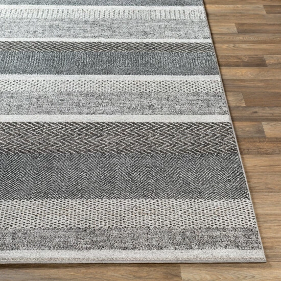 This collection showcases a unique and dramatic Bohemian striped pattern featuring chevron and dot details. This rug also features a comfortable medium pile and minimal to zero shedding. Both durable and stylish, this rug is great for high-traffic areas. Machine woven in Turkey with 100% polypropylene. Spot or professionally clean only. Rug pad recommended.