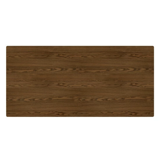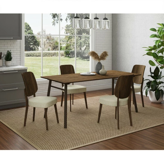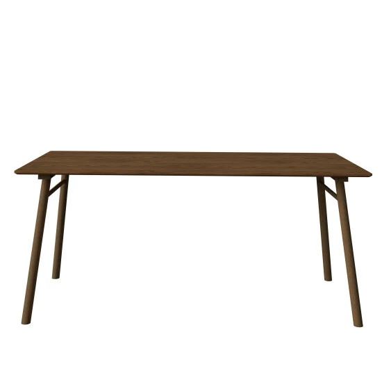Clean, minimalistic lines give this dining table its mid-century modern appeal. Crafted of engineered wood veneer with a walnut finish, it features a crossbar on each end. The table seats up to 6 comfortably, making it perfect for entertaining or everyday use in a kitchen or dining room.