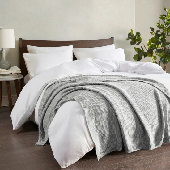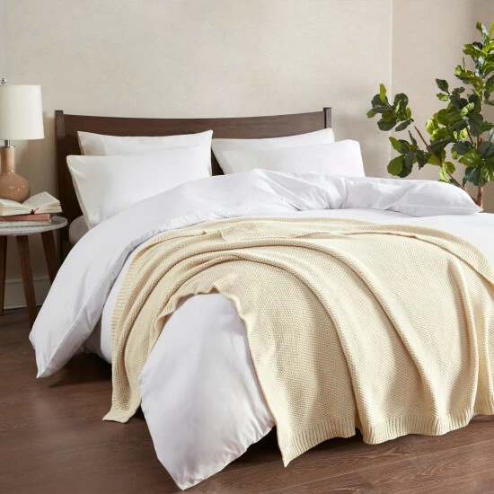 Bundle up in the warm and cozy comfort of the INK+IVY Bree Knit Throw. This ultra-soft, 100% acrylic throw features a classic knit design that creates a charming cottage look, while providing a rich feel perfect for draping over your sofa. Machine washable for easy care, this knit throw blanket brings a cozy country vibe to your space.