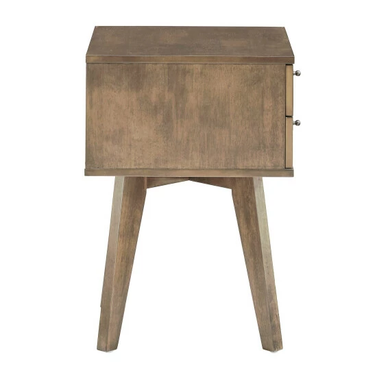 This two-drawer nightstand by Carson Carrington looks great next to beds but is also perfect as an end table to use alongside accent chairs, or sofas. The rubberwood and veneer materials are constructed with a mid-century modern flair in a light charcoal grey finish that coordinates with a variety of design themes. Store your nighttime or living room essentials in the two drawers that operate on metal drawer glides.