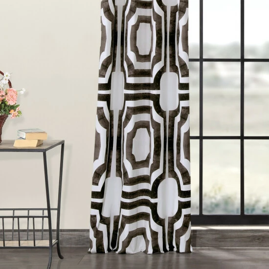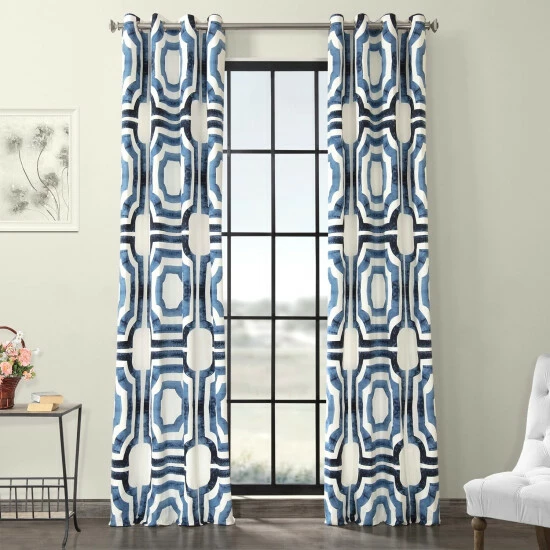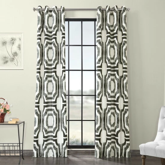 Allow just the right amount of lighting into your home with this grommet printed cotton curtain. This curtain panel is made of cotton and measures 50 inches wide and is available in different lengths. This curtain is thick enough to use for do-it-yourself upholstery projects. The geometric print will be a welcomed addition to your home.
