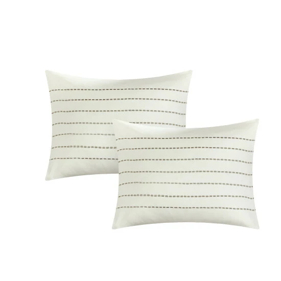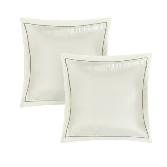 Create a spa like setting in your master bedroom when decorating with this Spa inspired stitch embroidered bedding set. Serene color tones set a very coastal and very muted atmosphere to help you relax and compromising your sense of style. Enjoy super soft 120’s grade microfiber fabric with engineered stitch embroidery to add a simplistic yes extremely sophisticated look. The decor pillows included have detailed banding and embroidery incorporating color, sense of style in the ultimate Chic fashion.