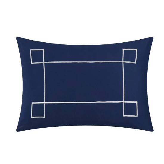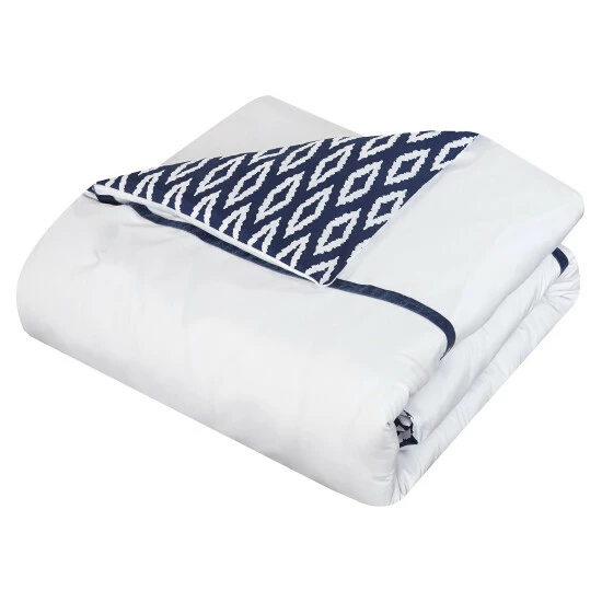 Make your bed even more comfortable with this nine-piece comforter set. The cozy reversible comforter features polyester fill and microfiber fabric with a geometric-style top and solid border pattern on the bottom. Decorative pillows, sheets, and shams complete the modern design, while the machine-washable pieces let you quickly clean the entire bed-in-a-bag set.