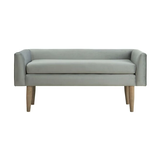 Update your home and provide an extra seating option with this upholstered bench. This bench features a soft velvet fabric and is available in multiple color options so you can be sure to get the right color to match your existing decor. The white washed wooden legs and sleek clean lines will give a sleek and polished look to any living space in your home. Infuse fashion and functionality into your home with this versatile bench.