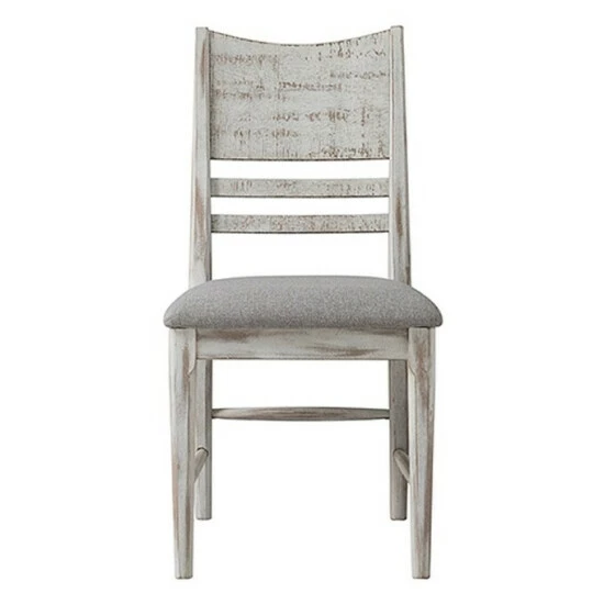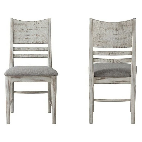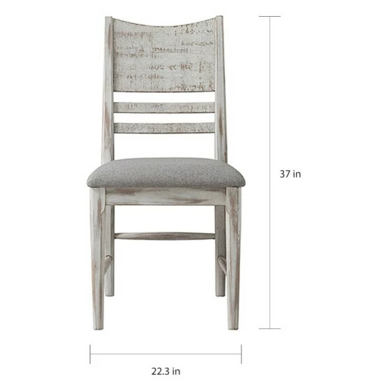 Add some extra seating to your home with this set of two side chairs. These chairs are made of solid acacia, hardwood and fabric cushions. The weathered white finish will match any existing decor. The durable cushion seating will give you all of the support and comfort you could ever want.