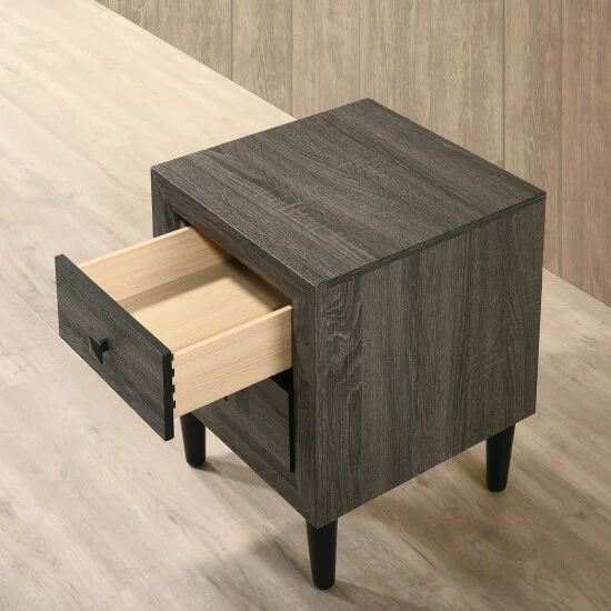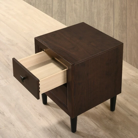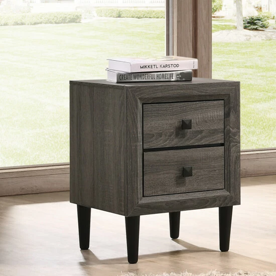 Complete your bedroom decor with this contemporary nightstand. This compact unit features two drawers with ample space to store your valuables, while its smooth surface holds your table lamp or bed-side essentials. Available in your choice of a grey, a white, or an espresso finish for easy matching with your room’s interiors, this eco-friendly unit with its English dovetail construction looks stunningly elegant. This nightstand comes fitted with elegant drawer pulls and Kenlin glides for easy access your belongings, while its wood and metal construction ensure durability.