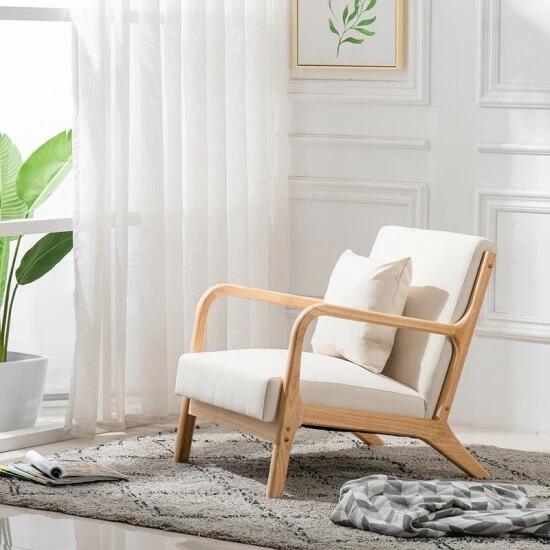 Add some extra seating to your home with this upholstered accent chair from the Carson Carrington collection. This durable and cozy accent chair is rife with breezy, effortless refinement. The solid rubberwood frame and plush cushions make this chair both durable and comfy.