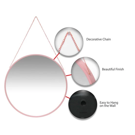 The Bubblegum Pink Kabbo Mirror is simple, fun and is a vibrant addition to your home. This 17 7/8″ decorative indoor wall mirror features a basic yet eye-catching pink plastic frame with a decorative gold metal chain for easy hanging anywhere in your home.