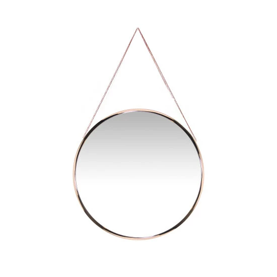 Artfully unique and simply stylish, the Kabbo Rose Gold wall mirror is a true piece of art. This round mirror comes with a real metal chain that can be used to hang it. Ahead of all metal wall mirrors that you may have owned or seen, this one is a must have if you like the rich chromatic colors of Rose Gold and Silver. These colors are currently in trend for home decor accents and a unique decorative mirror such as the Kabbo is the perfect modern/contemporary decor accent. Anyone with an eclectic taste will instantly be drawn to this bold 17.5-inch mirror. The mirror offers an interesting contrast when paired with pastels and plain wood. It is perfect for places that beg a little makeover. Just hanging this mirror in that space will instantly transform it to a chic space that reflects and magnifies light with simple elegance.