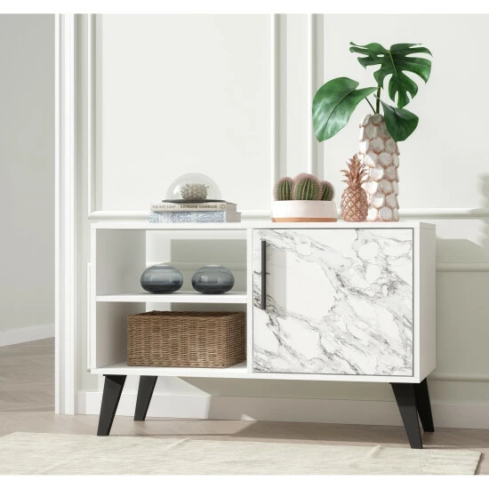 - Includes 2 Open Cubby Spaces, and 1 Concealed Storage Space with 1 Door.