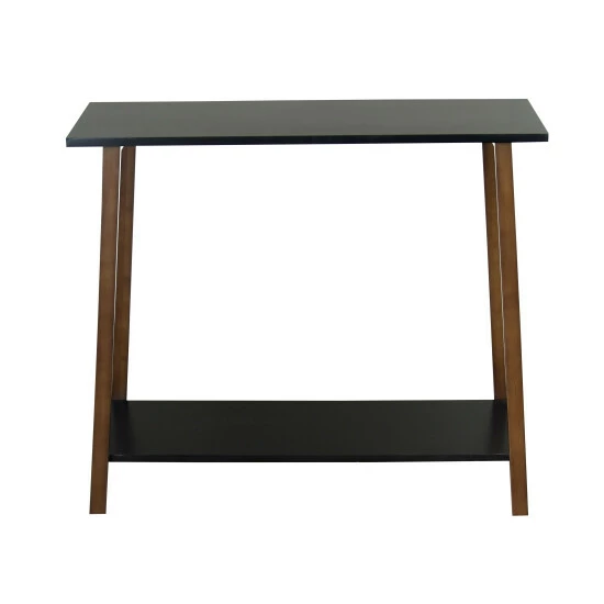 Contemporary simplicity with a hint of mid-century modern makes this environmentally friendly console table a must-have for any room. Crafted from bamboo, its frame showcases an angled look that gives it a unique eye-catching appeal. The top and lower shelf are crafted from manufactured wood and comes in a solid finish, so as not to clash with your existing color scheme. This table combines simple elegance, beautiful design, and a green sustainability story to make a perfect fit for your home, and a positive impact on the planet. After assembly, this product can support up to 150 lbs.