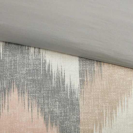 A broken chevron motif is given an eclectic twist with its modern color palette and ikat design. Made from 100-percent cotton, the comforter set flaunts gorgeous hues of blush, taupe, grey, and white to accentuate this dynamic chevron motif. The INK+IVY Bedding Collection feature hidden bartacks on comforters to give it a unique duvet-like finish and are machine washable for easy care. Perfectly embodying the mid-century lifestyle, this oversized and overfilled comforter will give your bedroom a simple, yet dynamic update.