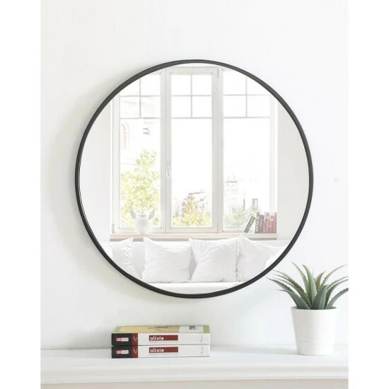 Update your home or office with this gorgeous contemporary mirror. This mirror features a thin rounded metal edges in a deep profile, reflecting a minimalist’s design. Metal hangers are used to ensure that they are securely welded to the back of the metal frame. This mirror is an ideal size for small spaces.